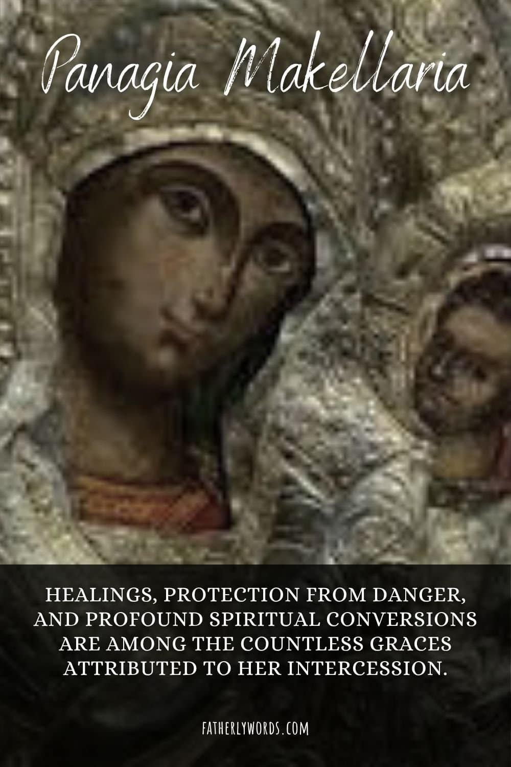 At the heart of the monastery lies its most treasured relic—the wonderworking icon of the Panagia Makellaritissa. This post-Byzantine image depicts the Virgin Mary holding the Christ Child, who blesses with His right hand.